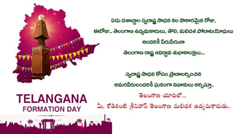 దిక్కులు పిక్కటిల్లేలా నినదించిన ‘జై తెలంగాణ’ ఆవాజ్ ! చీకట్లను చీల్చుకుంటూ.. తెలంగాణ రాష్ట్రం ఆవిర్భవించి ఏడు వసంతాలైంది..! ఆరు దశాబ్దాల పోరాట కాలంలో ఎన్నో భావోద్వేగాలు.....
